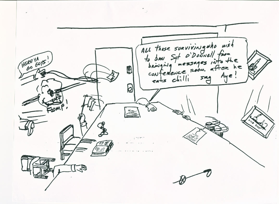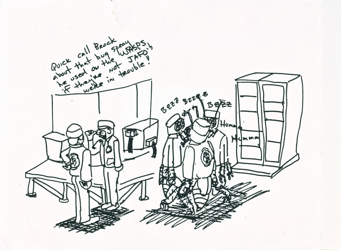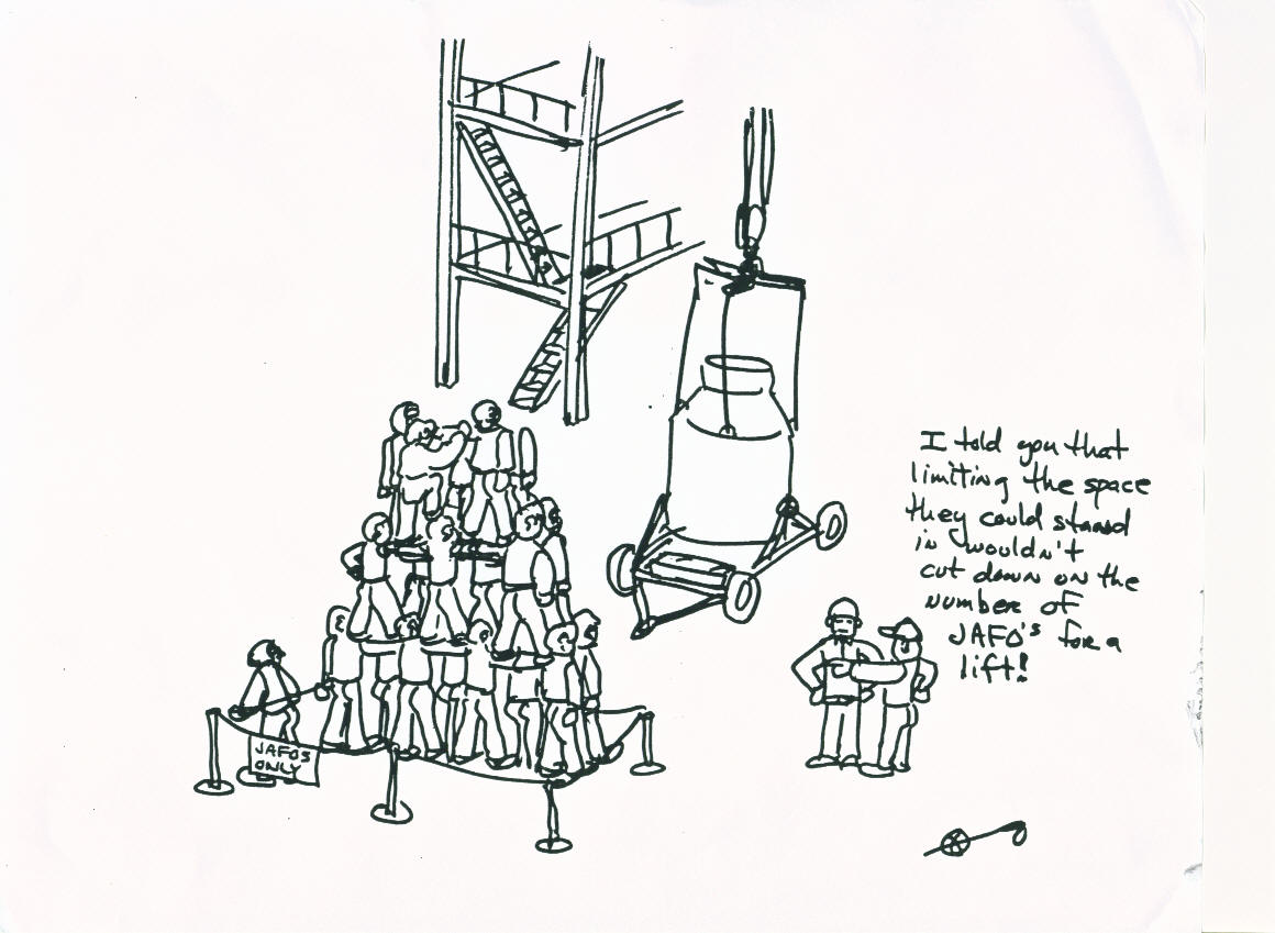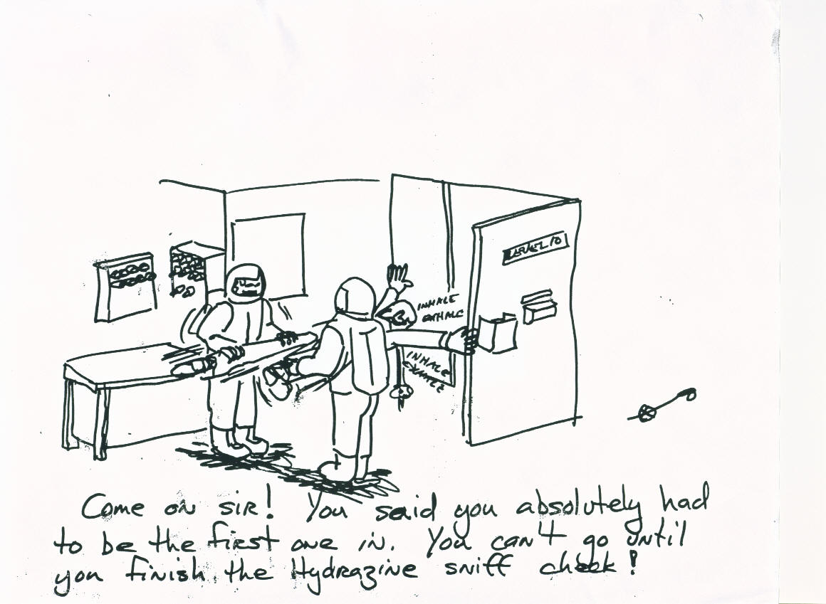 In the 80s an officer at ETR drew a bunch of cartoons of the daily goings on around the Cape. Some of you may remember them. I think the artists name was Polski or something like that. If any one knows how to get in touch with him please let me know. These cartoons were just a few of many. The jokes are “in” jokes and you would have to know the people involved to get some of them. I hope some of the old timers will remember these cartoons.