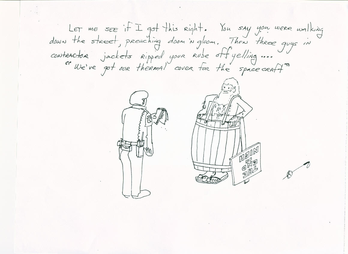I think we maybe sneaking up on the identity of the cartoonist, Chris Ihde of Aerospace Corp got the following from Charlie Gross: