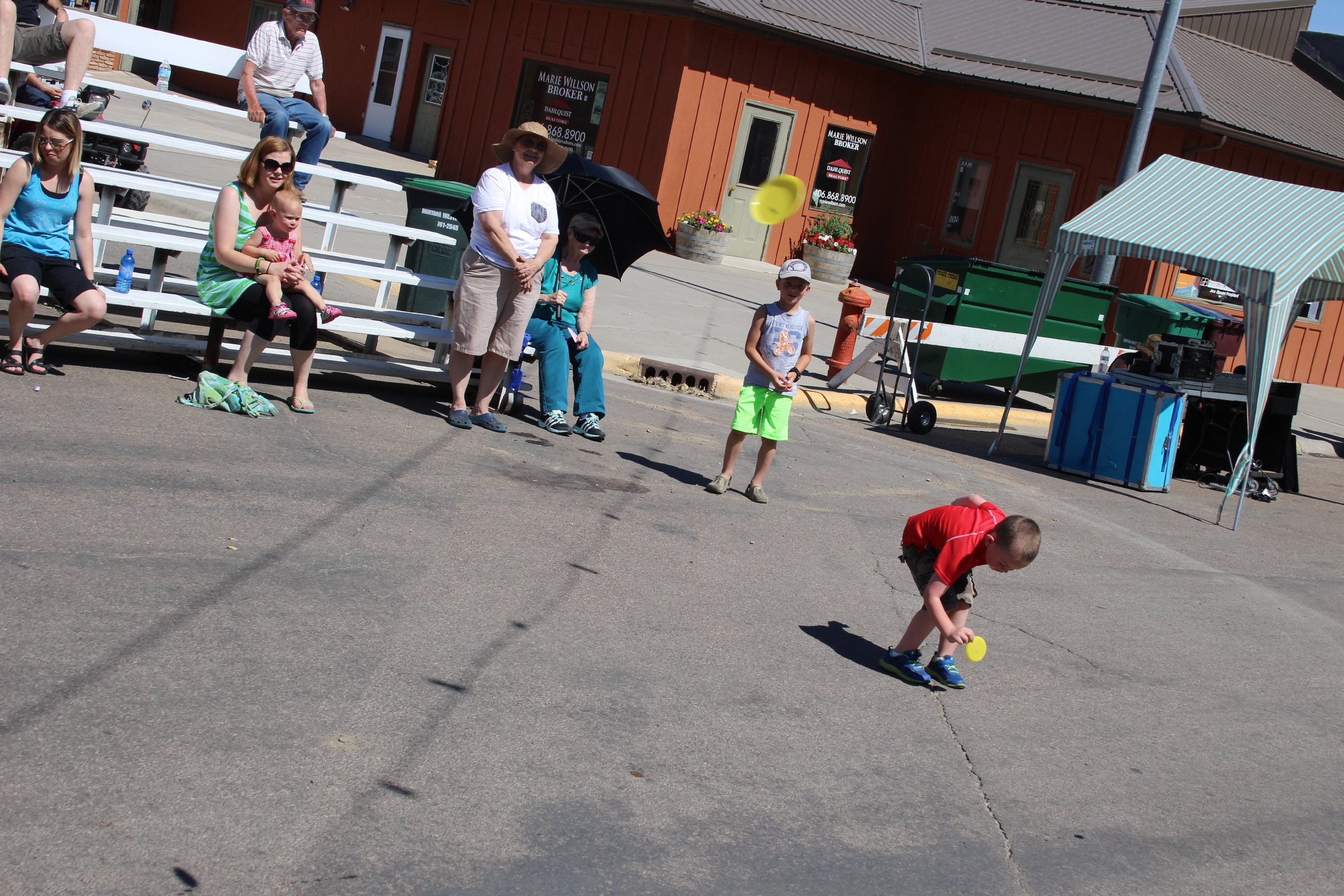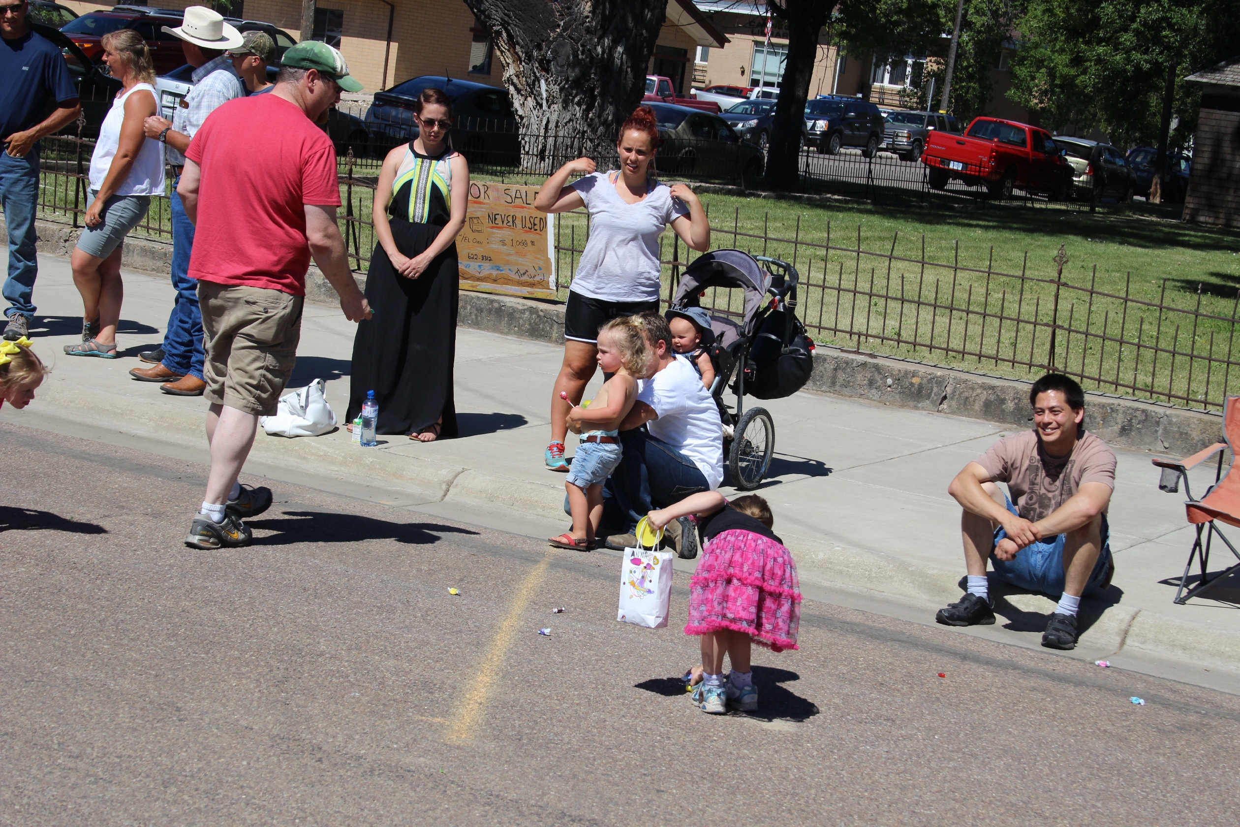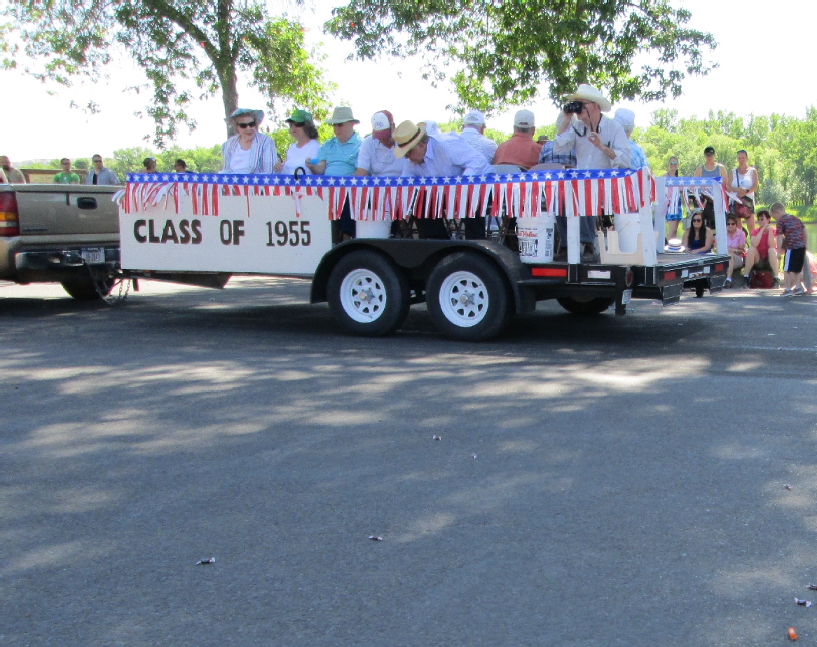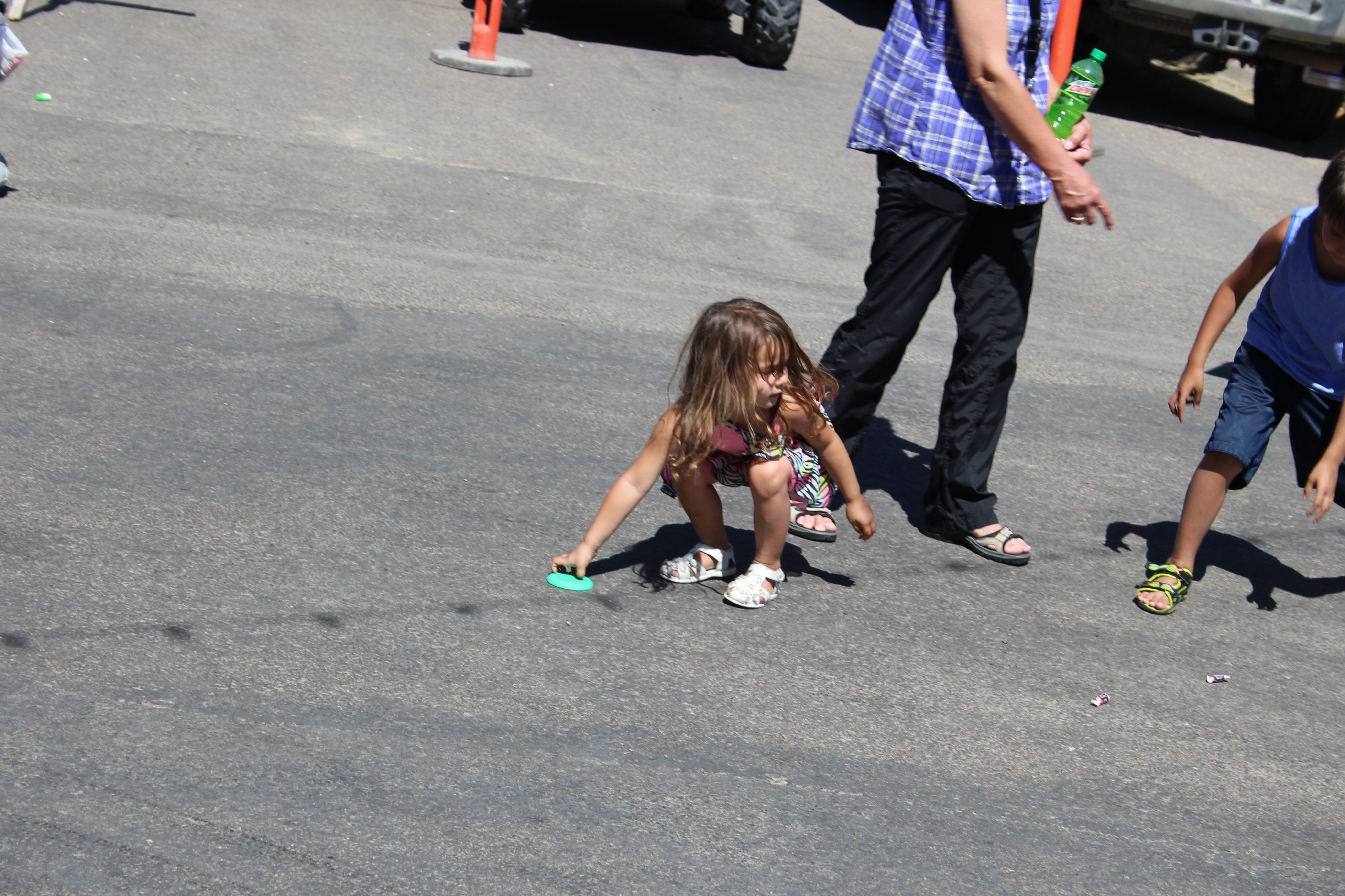 Elinor and George picked up the chairs the day before the parade. The signs were attached to the float(trailer) and every thing was ready to go Friday. Saturday Elinor and George had the float lined up on Front street ready to roll. George drove and Shirley Carver (broken shoulder and all) acted as co-pilot with a walkie-talkie and away we went. We all threw mini-frisbees, bubble makers, and candy to the kids.
