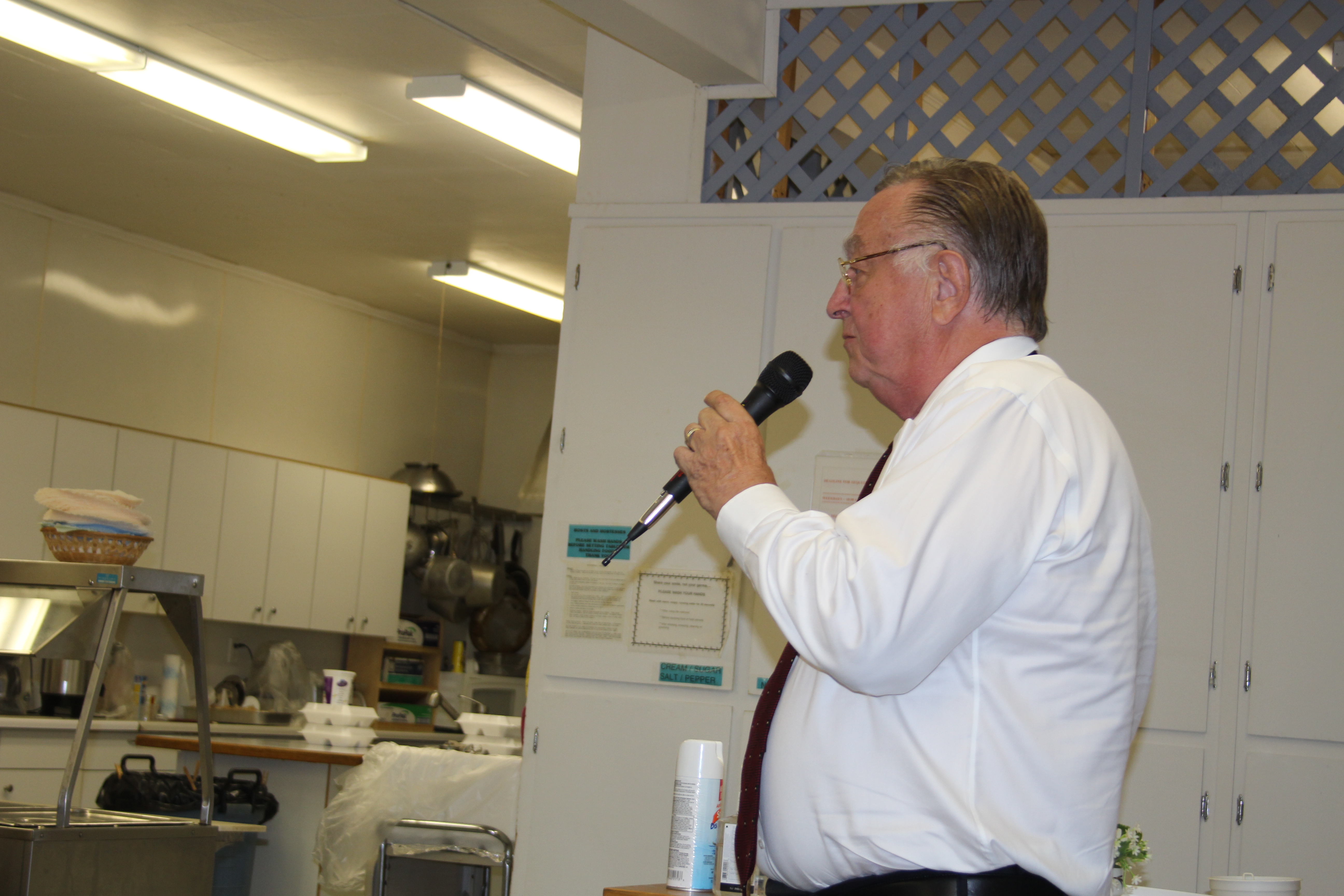 The dinner Betty had arranged was great. The River Press took our picture before dinner. Denny Nottingham acted as master of ceremonies and kept every thing on track.